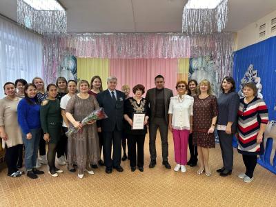 Член ЦК КПРФ, Сенатор Российской Федерации Айрат Гибатдинов по поручению Председателя Комитета СФ по науке образование и культуре Лилии Гумеровой вручил заведующей детского сада № 148 Сосиной Нине Павловне Благодарственное письмо Комитета.