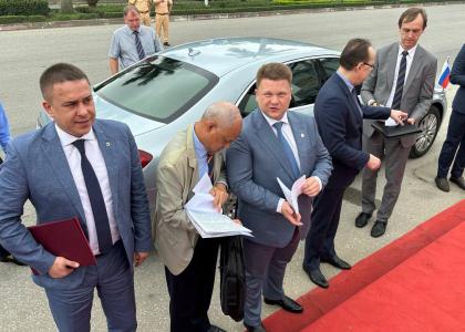 После этого состоялась рабочая встреча с Чрезвычайным и Полномочным Послом РФ в Социалистической Республике Вьетнам Бездетко Геннадием Степановичем и Торговым представительством РФ в Социалистической Республике Вьетнам Хариновым Вячеславом Николаевичем. На которой парламентарии Обсудили международное и межрегиональное взаимодействие России и Вьетнама.