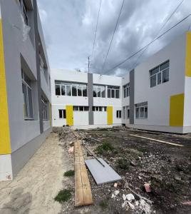 На сегодняшний день здесь активно ведутся работы в одном из корпусов: устанавливается вентиляция и отопление, укладываются напольные покрытия, окрашиваются стены. Фасад и кровля уже полностью готовы, завершается возведение отмостков. На ремонт учреждения выделен 81 млн рублей. Несмотря на обещания подрядчика завершить все работы к 1 сентября, сроки сдвигаются. Сенатор отметил, что ситуация будет находиться под строгим контролем, так как учебный год уже близок, а дети должны учиться в достойных условиях.