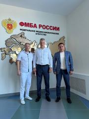 В ходе встречи с исполняющим обязанности генерального директора центра Андреем Белостоцким сенатор и депутат поздравили коллектив учреждения с прошедшим Днём Федерального медико-биологического агентства России.