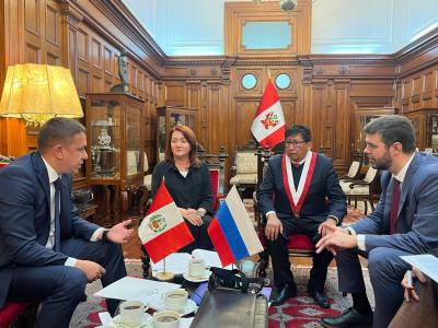 От имени Председателя Совета Федерации Валентины Ивановны Матвиенко были переданы приветствия перуанским коллегам. В ходе беседы обсуждались вопросы межпарламентского сотрудничества. Особое внимание было уделено предстоящей в Перу государственной реформе, в рамках которой в стране планируется учреждение второй палаты парламента — Сената.