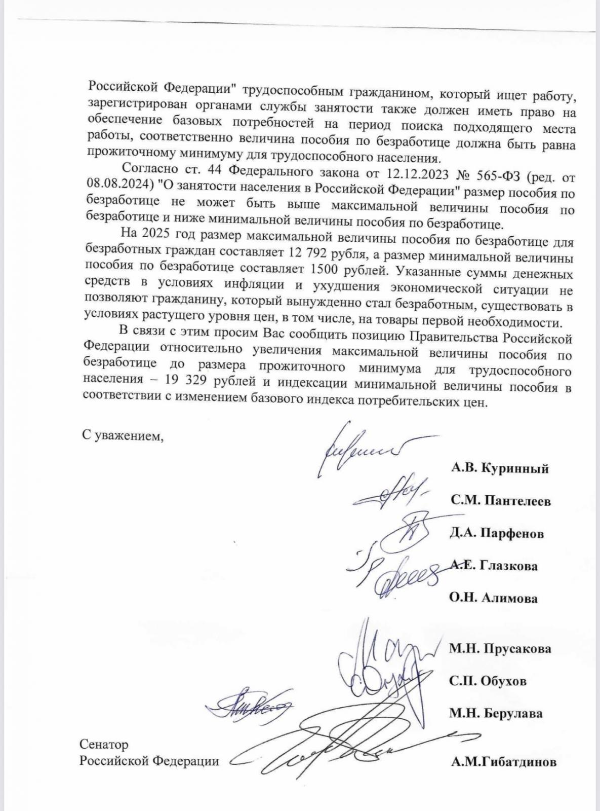 Депутаты Государственной Думы от КПРФ и сенатор от Ульяновской области Айрат Гибатдинов направили обращение председателю Правительства РФ Михаилу Мишустину с предложением повысить максимальный размер пособия по безработице до уровня прожиточного минимума — 19 329 рублей.