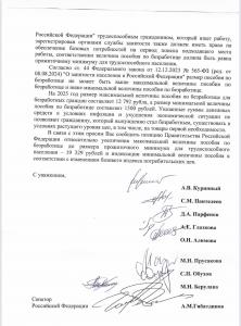 «Просим Правительство Российской Федерации рассмотреть возможность увеличения максимальной величины пособия по безработице до уровня прожиточного минимума для трудоспособного населения — 19 329 рублей, а также индексации минимальной величины в соответствии с изменением индекса потребительских цен», — говорится в обращении.