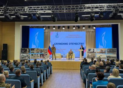 Сенатор РФ Айрат Гибатдинов совместно с участниками специальной военной операции провёл в кадетской школе имени Героя России Юрия Леонидовича Воробьёва встречу цикла «Сто вопросов взрослому», приуроченную ко Дню защитника Отечества.