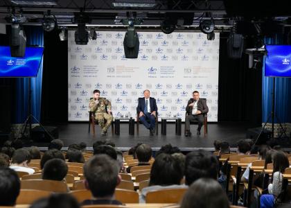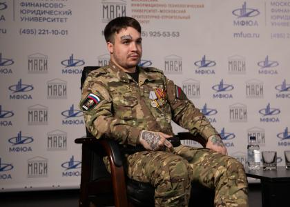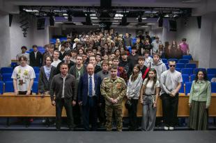 Участник СВО, боец Отдельной диверсионно-штурмовой бригады «Ветераны» Никита Кашаев (позывной «Мексика») представил студентам фотохронику, посвящённую боевому пути одного из самых известных и результативных подразделений Добровольческого корпуса «Ветераны». Никита подробно рассказал о службе, ключевых этапах боевого пути бригады, мужестве добровольцев и реальной обстановке на передовой.