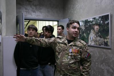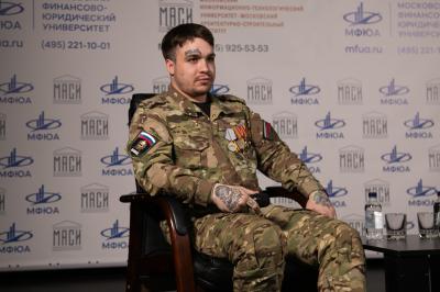 Участник СВО, боец Отдельной диверсионно-штурмовой бригады «Ветераны» Никита Кашаев (позывной «Мексика») представил студентам фотохронику, посвящённую боевому пути одного из самых известных и результативных подразделений Добровольческого корпуса «Ветераны». Никита подробно рассказал о службе, ключевых этапах боевого пути бригады, мужестве добровольцев и реальной обстановке на передовой.