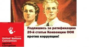 8 марта 2006 года Российская Федерация ратифицировала большинство положений Конвенции ООН 2003 года против коррупции. В настоящее время практически все они либо нашли отражение в российском уголовном законодательстве, либо могут быть криминализированы без нарушения структуры и принципов российского уголовного законодательства. Исключение составляет норма, предусмотренная статьёй 20 Конвенции ООН против коррупции "незаконное обогащение", трактуемое как значительное увеличение активов публичного должностного лица, превышающее его законные доходы, которые это должностное лицо не может разумным образом обосновать. Отказ от ратификации статьи 20 Конвенции ООН объяснялся опасением, что имплементация данной нормы в российское законодательство нарушит закреплённый в статье 49 Конституции РФ принцип Презумпции невиновности. Однако эти доводы являются надуманными и несостоятельными. Подтверждением этому является неоднократно высказанная позиция Конституционного Суда РФ.