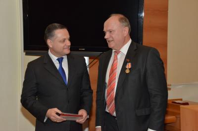 На заседание фракции был приглашен заместитель министра Российской Федерации по делам гражданской обороны, чрезвычайным ситуациям и ликвидации последствий стихийных бедствий В.С. Артамонов. Он вручил группе депутатов памятные медали МЧС России «Маршал Василий Чуйков» (с 1964 года маршал СССР В.И. Чуйков занимал пост начальника Гражданской обороны страны). Медалями были награждены Г.А. Зюганов, И.И. Мельников, В.И. Кашин, Н.В. Коломейцев, В.А. Коломейцев. С.П. Обухов, Н.М. Харитонов, Н.В. Разворотнев, А. Е. Локоть.