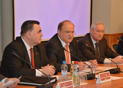 11 марта фракция КПРФ в Государственной Думе совместно с Всероссийским созидательным движением «Русский Лад» провела «круглый стол» на тему: «Значение научных трудов великого русского ученого В.И. Вернадского для будущего развития России и человечества». Перед участниками форума выступил Председатель ЦК КПРФ Г.А. Зюганов.