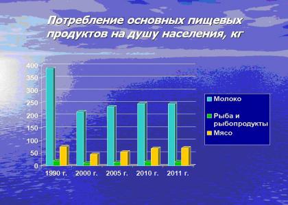 Всё это не могло не сказаться на объёмах лова и на качестве продукции, на потреблении рыбопродуктов населением России. Несмотря на некоторую положительную динамику в последние годы, тем не менее, потребление рыбной продукции на душу населения у нас далеко ещё от научно-обоснованных норм. Надо двигаться дальше, и здесь у нас много резервов, которые необходимо задействовать.