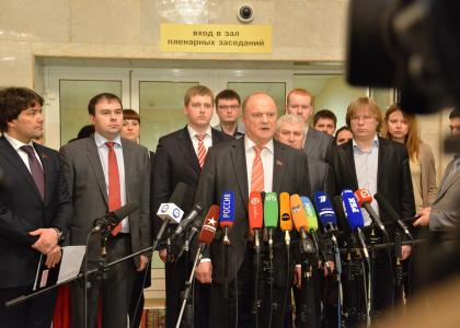 9 апреля, предваряя пленарное заседание Государственной Думы, перед журналистами выступил Председатель ЦК КПРФ Г.А. Зюганов.