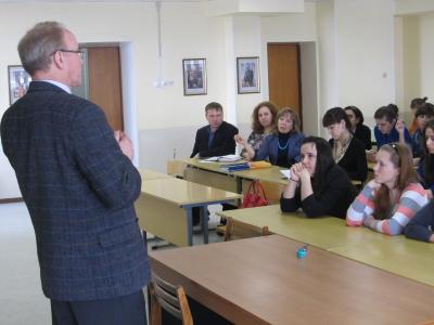 Далее депутат встретился со студентами историками и политологами. В ходе общения были затронуты многие вопросы, в частности, очередная кампания по переписыванию отечественной истории, национализация и возрождение СССР, была затронута тема «арабской весны» на Ближнем Востоке и в Северной Африке, особое внимание было уделено событиям в Ливии и Сирии и как это может отразиться на ситуации в России.