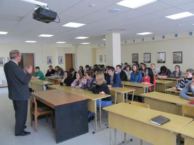 Вначале В.Н. Тетёкин встретился со студентами двух специальностей «Государственное и муниципальное управление» и «Финансы и кредит». Депутат на примерах рассказал будущим государственным служащим и управленцам об огромной ответственности за принимаемые решения и влиянии их на жизнь в стране, а так же к каким последствиям может привести халатность.