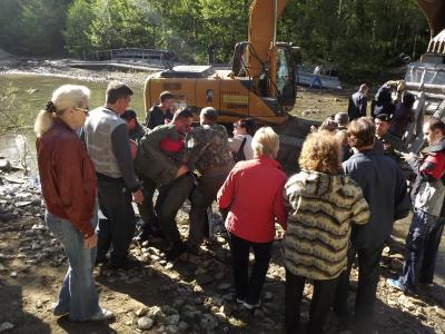 Очевидцы сообщают, что сейчас мост почти восстановлен: работникам осталось установить две последние опоры, местные жители стали постепенно расходиться.