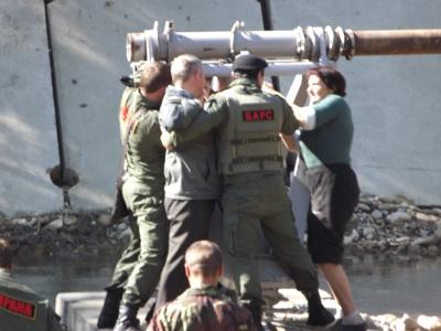 - Сегодня рано утром к разрушенному мосту прибыл отряд ЧОП «БАРС», укомплектованный выходцами из Северного Кавказа. Затем приехали строители и полицейские, около полусотни. Отряд полицейских возглавлял начальник полиции Адлерского района Медведев.