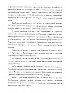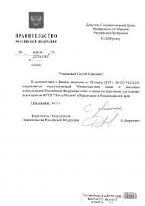 На имя депутата Госдумы С.П. Обухова пришел ответ на его депутатский запрос от заместителя Председателя Правительства РФ А.Дворковича. Ответ подготовлен Министерством связи и массовых коммуникаций РФ о мерах по коренному улучшению деятельности ФГУП «Почта России» в Краснодаре и Краснодарском крае.