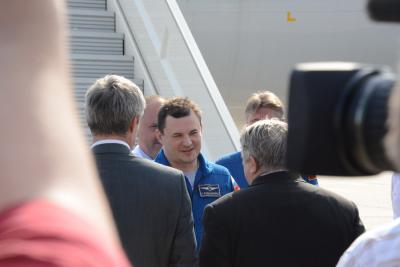 14 мая на подмосковном аэродроме Чкаловский депутаты фракции КПРФ в Госдуме А.А. Ющенко и Д.Н. Вороненков встретили только что вернувшегося с Международной космической станции космонавта Романа Романенко.