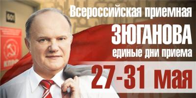 Решением фракции КПРФ в Государственной Думе ФС РФ с 27 по 31 мая 2013 года в регионах проводятся единые дни приема населения депутатами-коммунистами всех уровней от имени Руководителя фракции КПРФ в Государственной Думе ФС РФ. С этой целью все имеющиеся в регионе депутатские приемные КПРФ и помещения райкомов КПРФ должны работать в режиме общественной приемной Г.А. Зюганова.