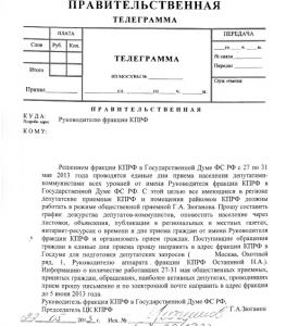 ПРАВИТЕЛЬСТВЕННАЯ ТЕЛЕГРАММА