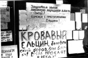 Именно с тех «окаянных» времен и берет свой отсчет современное российское государство. Государство, строящееся на крови невинных, мирных граждан - защитников Советской Конституции, Высших законодательных (представительных) органов власти Верховного Совета и Съезда народных депутатов Российской Федерации. Государство, рожденное на чудовищном насилии и произволе президентской, исполнительной власти, на безумстве стремлений к невиданному обогащению абсолютного меньшинства населения за счет обманываемого большинства. Государство, в котором право, закон, конституция, со дня его кровавого зачатия являются фиговым листком ельцинской демократии, прикрывающим авторитарный, деспотический режим, криминально-мафиозный, компрадорский характер его властных институтов. Себе все, а народу законы-вот бандитская философия родоначальников современной России, ставших с Октября 93 года ее хозяевами.