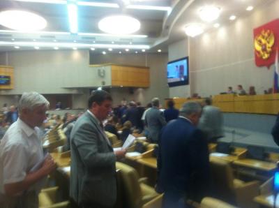 КОР: В итоге "за" законопроект в первом чтении проголосовали 286 депутатов, "против" 69. Фракция КПРФ демонстративно покинула зал заседаний, как и грозились еще днем.