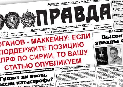 Джон Маккейн собрался написать заметку на русском языке. Причем не где-нибудь, а в газете "Правда". Печатный орган сначала советской коммунистической партии, теперь КПРФ, был основан еще в 1912 году Владимиром Лениным. И вот теперь Маккейн решил написать туда заметку.