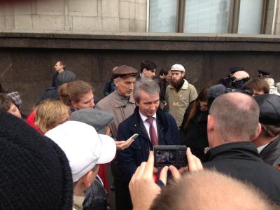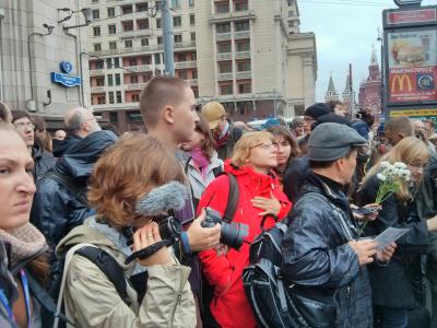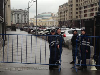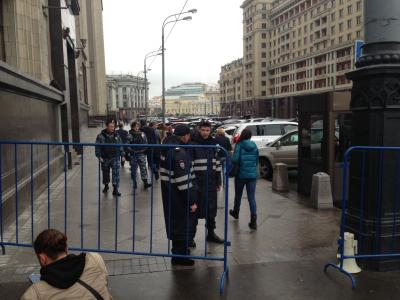 Полиция перекрыла подходы к Государственной думе, вход только для депутатов, их помощников и сотрудников аппарата Госдумы по по пропускам. Сотрудники полиции через мегафон потребовали от граждан разойтись, по мнению полицейских, протестующие создают помехи для пешеходов. Но граждане не расходятся, вместе с ними остаются депутаты-коммунисты.