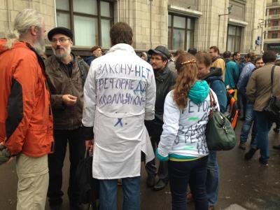 Свой протест пришедшие граждане выражали не в форме традиционного пикета или митинга, а в форме так называемых «народных гуляний». У кого-то на груди был значок с надписью «SOS. Российская академия наук», у других – по две красные гвоздики. Одиноко стоящий гражданин проводил одиночный пикет, он держал в руках плакат с надписью «Спасти науку – спасти Россию» (в этом случае не требуется никаких уведомлений).