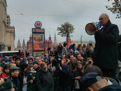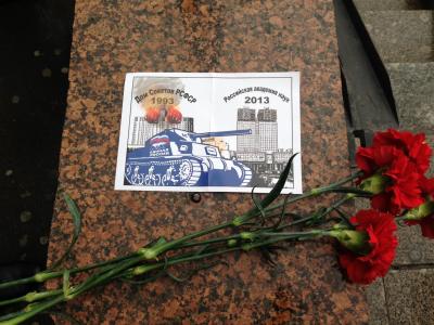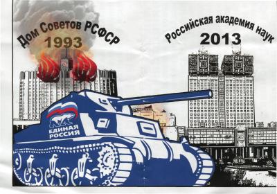 Московские коммунисты распространяли листовку, на которой провели исторические параллели с 1993 годом, когда был расстрелян Дом Советов РСФСР. Так же, по мнению авторов листовки, «Единая Россия» «расстреливает из танка» Российскую академию наук.