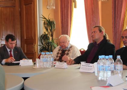 В работе круглого стола приняли участие Рябов Николай Федорович - депутат ГД, фракция КПРФ, Потапов Александр Владимирович - депутат ГД, фракция КПРФ, Шевелуха Виктор Степанович-академик Международной славянской академии наук, искусств, образования и культуры, Станюкович Андрей Кириллович, доктор исторических наук, Хоруженко Олег Игоревич-кандидат исторических наук, старший научный сотрудник Института российской истории РАН, Тарасов Владимир Александрович - Член Союза краеведов России, академик международной академии детско - юношеского туризма и краеведения, Силин Роман Анатольевич - Депутат Законодательного Собрания Республики Карелия, фракция КПРФ, заместитель председателя комитета по законности и правопорядку Республики Карелия.