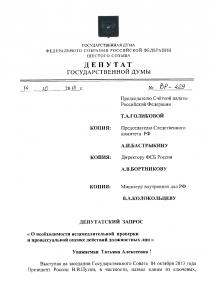 Депутаты фракции КПРФ в Госдуме В.Ф. Рашкин, В.Р. Родин, О.А. Куликов и С.П. Обухов направили депутатский запрос председателю Счетной палаты РФ Голиковой «О необходимости незамедлительной проверки и процессуальной оценке действий должностных лиц».