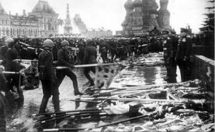 Обращаюсь к Вам с большой просьбой прояснить один исторический момент, который, в последнее время, довольно часто возникает при встречах с избирателями. И представители старшего поколения, и более молодые граждане интересуются следующим вопросом: действительно ли трехцветное знамя (российский триколор) на Параде Победы в 1945 году был брошен к подножию Мавзолея?