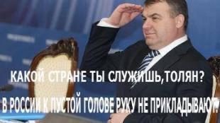 Сердюков получил новое назначение, но мы должны положить конец «сердюковщине» в нашей стране. Не дадим развиваться «сердюковщине» в нашей стране.