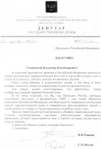 Коммунисты В.Ф. Рашкин и С.П. Обухов направили депутатский запрос Президенту РФ.