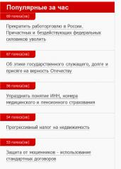 В настоящий момент на сайте ni.kprf.ru идёт голосование по более чем 750 инициативам (табл.2), распределенным для удобства пользователей портала по 25 категориям.