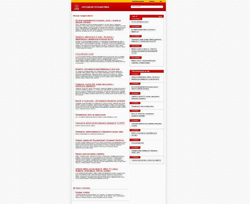 Ранее голосование по такого рода гражданским инициативам велось на сайте www.opentown.org. Но это новостной, общественно-политический портал. Поэтому было решено создать специальный интернет-проект -«Народная инициатива» (http://ni.kprf.ru).