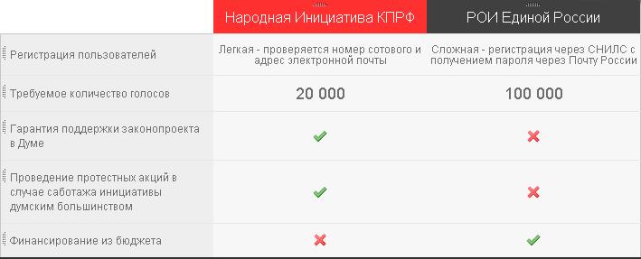 Руководствуясь этим соображением, фракция КПРФ поддержала инициативу гражданских активистов и предоставила гражданам более доступный ресурс для воплощения их здравых и конструктивных идей – портал «НАРОДНАЯ ИНИЦИАТИВА». Его принципиальным отличием от РОИ является простота и общедоступность, не исключающие необходимую в подобных случаях верификацию данных о пользователях ресурса.