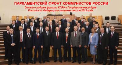 Парламентский фронт коммунистов России . Отчет о работе фракции КПРФ в Государственной думе Российской Федерации в осеннюю сессию 2013 года