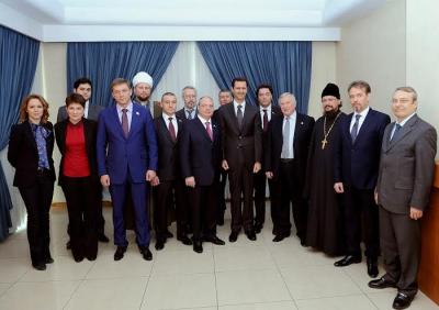 Отдельно хотелось бы поделиться впечатлениями о встрече с Башаром Асадом. Мы ожидали встретить усталого человека, истерзанного войной, понурого, с потухшими глазами, но к нам вышел подтянутый, бодрый, интеллигентный лидер. Он поприветствовал нашу делегацию от всего сирийского народа. В беседе с Асадом мы задали интересующие нас вопросы о политическом будущем и о том, как, на его взгляд, будет развиваться ситуация в Сирии после конференции Женева-2, на которые последовал ответ: «…Если бы мы хотели сдаться, то мы бы сдались с самого начала. Мы стоим на страже родины, понимая, что если бы не мы, то террор распространился бы дальше на Иран и Россию. Только сирийский народ может решить судьбу страны.