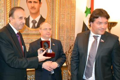 После дружеской беседы, которая продолжалась почти два часа, я выполнил поручение руководства партии, передал привет от нашего лидера и вручил, считаю очень символичный подарок: медаль «70 лет Сталинградской битвы» (ведь Сирия сегодня является Сталинградом Ближнего Востока), и часы с изображением Маршала Жукова – Маршала Победы, что особо было отмечено Башаром Асадом.