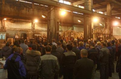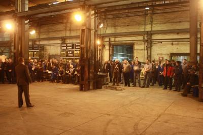 Встреча с коллективом предприятия проходила прямо в сборочном цехе, среди заготовок деталей и станков. Коллектив встретил выступление кандидата в мэры с большим интересом. Работники предприятия активно разбирали агитационные материалы, которые распространялись на встрече. Анатолий Локоть рассказал о своей работе в оборонной промышленности, познакомил работников с действиями депутатов-коммунистов в Государственной Думе, поделился видением последних событий в Новосибирске и области, а также в России и на Украине.