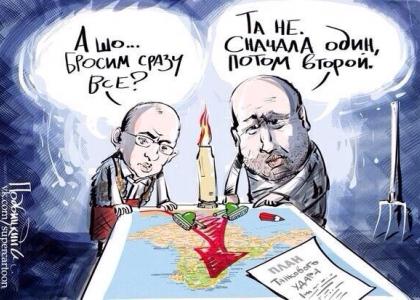 Сейчас те же силы принуждают уже Россию идти на уступки фашистам, которые уже объявляют о своих территориальных претензиях к Российской Федерации. Это кощунственно. Особенно в год 70-летия освобождения Крыма и всей Украины от немецко-фашистских захватчиков. США и Евросоюз, забыв уроки Второй мировой войны, решили повторить гитлеровский план нападения на Россию. России вновь приходится защищать человечество от коричневой чумы.