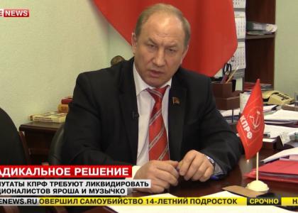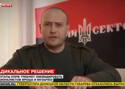 - Я считаю, что есть все основания для того, чтобы потребовать от силовых структур приступить к уничтожению Александра Музычко и Дмитрия Яроша на территории Украины. Наши страны ратифицировали все договора парламентской ассамблеи Европы, и там прописана "борьба с терроризмом". Согласно договору, должны приниматься все меры по уничтожению террористов на территории Украины, - говорит Валерий Рашкин. - Иначе Музычко и Ярош могут приехать в Подмосковье и начнут уничтожать наших граждан. Они убивали русских солдат в Чечне и призывают к терроризму, мы должны принимать меры. Давайте проведем параллель с бен Ладеном. Во время ловли бен Ладена США ссылались на международные договора и призывали к уничтожению террориста, который угрожал этой стране и проводил террористические акты. Музычко и Ярош делают то же самое, и мы должны принять все меры.