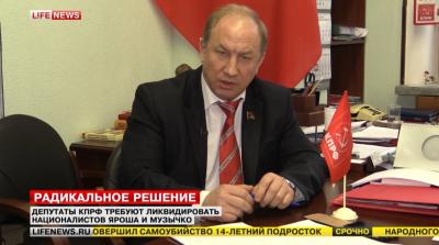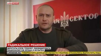 - Я считаю, что есть все основания для того, чтобы потребовать от силовых структур приступить к уничтожению Александра Музычко и Дмитрия Яроша на территории Украины. Наши страны ратифицировали все договора парламентской ассамблеи Европы, и там прописана "борьба с терроризмом". Согласно договору, должны приниматься все меры по уничтожению террористов на территории Украины, - говорит Валерий Рашкин. - Иначе Музычко и Ярош могут приехать в Подмосковье и начнут уничтожать наших граждан. Они убивали русских солдат в Чечне и призывают к терроризму, мы должны принимать меры. Давайте проведем параллель с бен Ладеном. Во время ловли бен Ладена США ссылались на международные договора и призывали к уничтожению террориста, который угрожал этой стране и проводил террористические акты. Музычко и Ярош делают то же самое, и мы должны принять все меры.