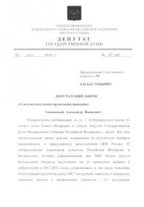 О принятых Вами мерах процессуального реагирования прошу Вас сообщить в Государственную Думу Федерального Собрания Российской Федерации в сроки, установленные законом.