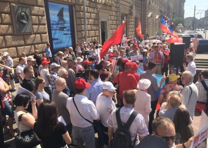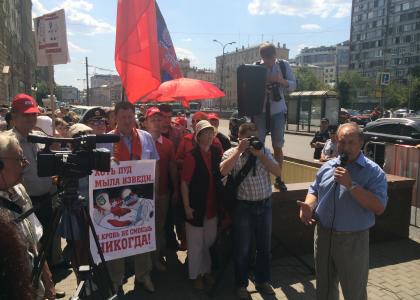 Коммунисты Москвы и Московской области, их сторонники, представители организаций и движений, входящих во Всероссийский штаб протестных действий, простые москвичи выражают свой решительный протест против поддержки властями США режима убийц и карателей Киева.