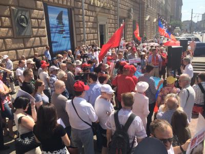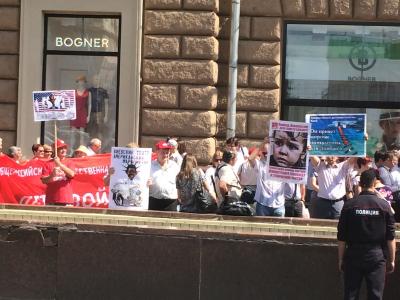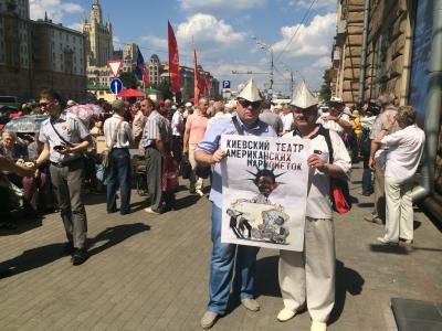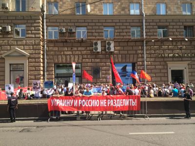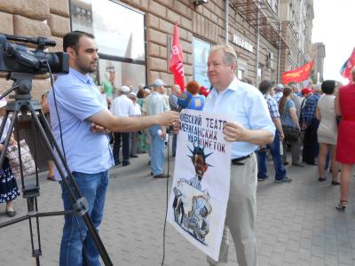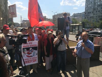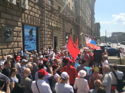 Коммунисты Москвы и Московской области, их сторонники, представители организаций и движений, входящих во Всероссийский штаб протестных действий, простые москвичи выражают свой решительный протест против поддержки властями США режима убийц и карателей Киева.