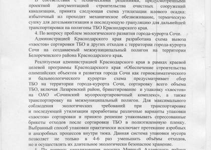 Д. Козак направил депутату информацию, подготовленную администрацией Краснодарского края совместно с министерством строительства и жилищно-коммунального хозяйства РФ и администрацией г. Сочи.