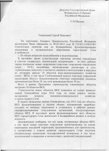 Д. Козак направил депутату информацию, подготовленную администрацией Краснодарского края совместно с министерством строительства и жилищно-коммунального хозяйства РФ и администрацией г. Сочи.