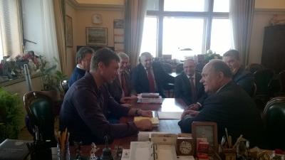 8 сентября состоялась встреча руководителя Штаба ЦК КПРФ по оказанию гуманитарной помощи Юго-Востоку Украины, депутата Госдумы ФС РФ Казбека Куцуковича Тайсаева с руководителем парламента Новороссии Олегом Анатольевичем Царевым для проведения консультаций по совместной работе. В ходе беседы были обсуждены вопросы совместных действий по оказанию гуманитарной помощи Новороссии.
